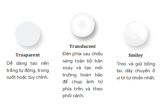 Một bàn xoay bên trong và vòng quay hình cầu đều được quản lý bởi phần mềm, để xác định góc phù hợp cho ảnh của bạn và tạo video đầy cảm xúc, kết hợp hai chuyển động.